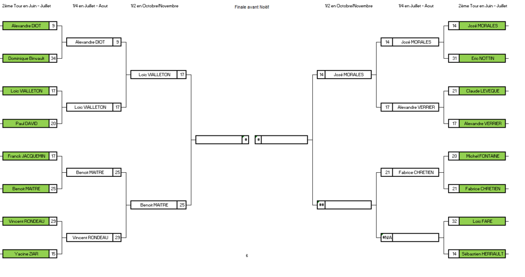 Les retardataires Seb. Herrault et Loïc FP n'ayant pas encore joué leur 2ème tour doivent se dépêcher! :-). Le vainqueur de ce 2ème tour jouera contre Fabrice Chrétien pour le dernier 1/4 de finale!